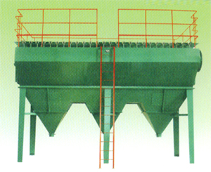 含塵氣體由上部進風(fēng)口進入氣箱,通過導(dǎo)流擋板勻稱的分布由過濾元件。在過濾元件的作用下,粉塵被吸附在過濾元件的表面,潔凈的氣體通過出口管道排出,吸在過濾元件表面的粉塵。利用電磁閥在控制儀的控制下(控制儀可根據(jù)實際工況進行設(shè)定),對過濾元件輪流進行清灰。因過濾元件為垂直安裝,所以能達到良好的清灰效果,以保證集塵器的正常工作。