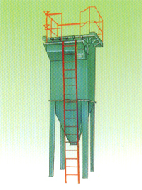 袋式除塵器由出灰斗、進排風道、過濾室、清潔室、濾袋及框架(袋籠骨、文氏管)、手動進風閥,卸灰閥、脈沖清灰機構、壓縮空氣管道及平臺扶梯、電控等組成。